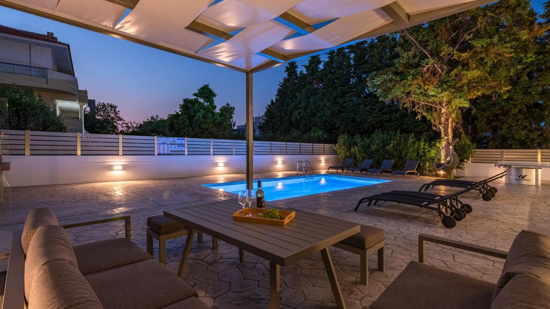 Villaen har en svømmepøl på balkonen. Gæsterne kan også bruge en privat pool.